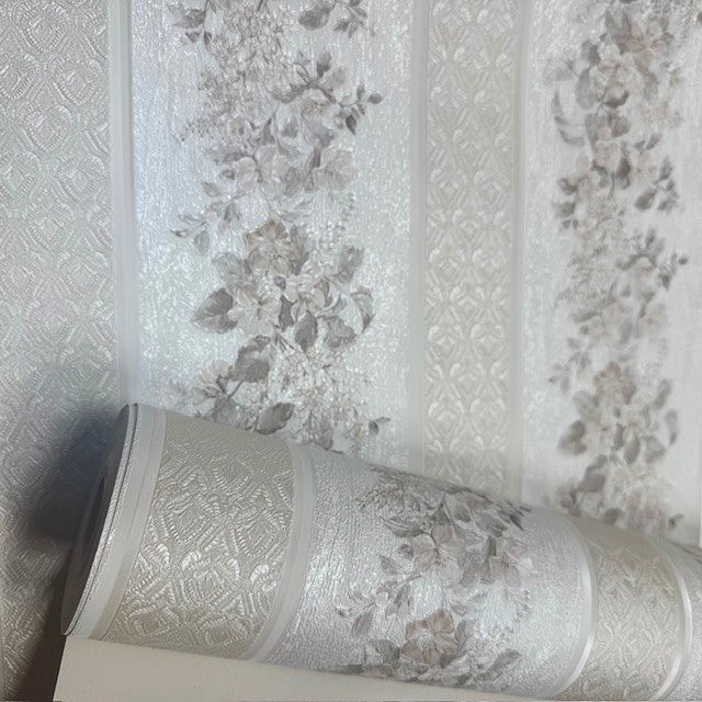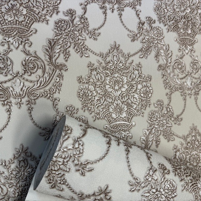 Barok Behang Grijs Wit Metallic – Vinyl Luxe | 6837-0Luxe barok design in zilver en wit voor een elegante uitstraling