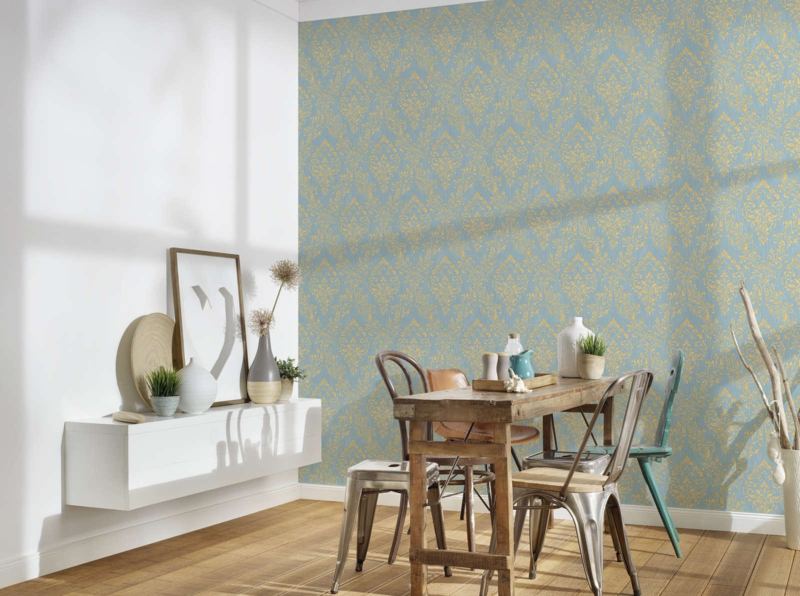 EXCLUSIEF BEHANG TEXTIELLOOK BLAUW GLIM BAROK 30659-5