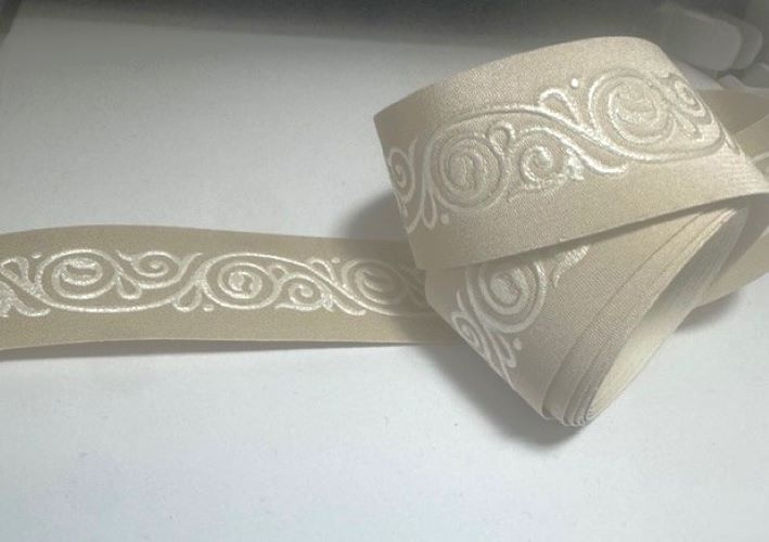 Behangrand Satijn Look Beige/Wit – 2,8 cm x 5 m